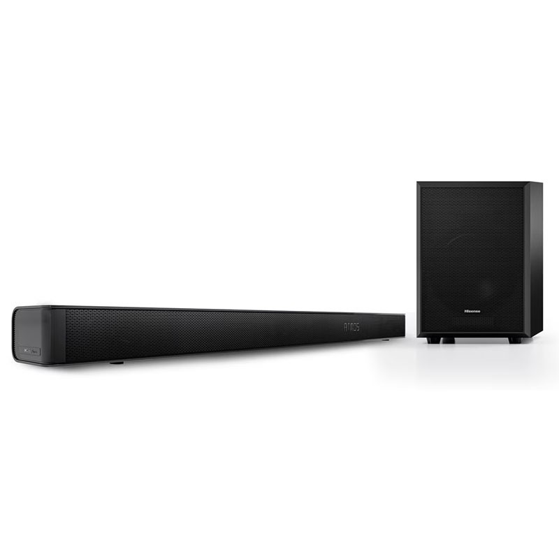 Hisense AX3100G. Canales de salida de audio: 3.1 canales, Potencia estimada RMS: 280 W. Diámetro del woofer (imperial): 10,2 cm (4). Conectividad del altavoz de subgraves (subwoofer): Inalámbrico, Diámetro del altavoz de graves (woofer) (altavoz de subgraves o subwoofer): 16,5 cm (6.5). Color del producto: Negro, Tipo de visualizador: LED, Formatos de audio soportados: FLAC, MP3, WAV, WMA. Tecnología de conectividad: Inalámbrico