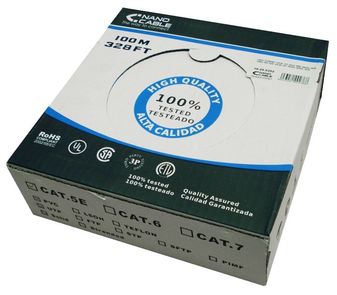 Nanocable CABLE RED RJ45 CAT.5E FTP RIGIDO AWG24, 100 M. Longitud de cable: 100 m, Cable estándar: Cat5e, Blindaje de cable: F/UTP (FTP), Color del cable: Gris