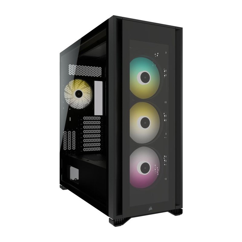 Corsair iCUE 7000X RGB Tempered Glass Full-Tower ATX PC Case. Factor de forma: Full Tower, Tipo: PC, Color del producto: Negro. Ubicación de fuente de alimentación: Fondo, Factores de forma de la fuente de alimentación compatibles: ATX. Ventiladores frontales instalados: 3x 120 mm, Diámetro de ventiladores frontales soportados: 120,140 mm, Ventiladores traseros instalados: 1x 120 mm. Tamaños de disco duro soportados: 3.5, Factor de forma de disco SSD: 2.5. Ancho: 248 mm, Profundidad: 550 mm, Altura: 600 mm