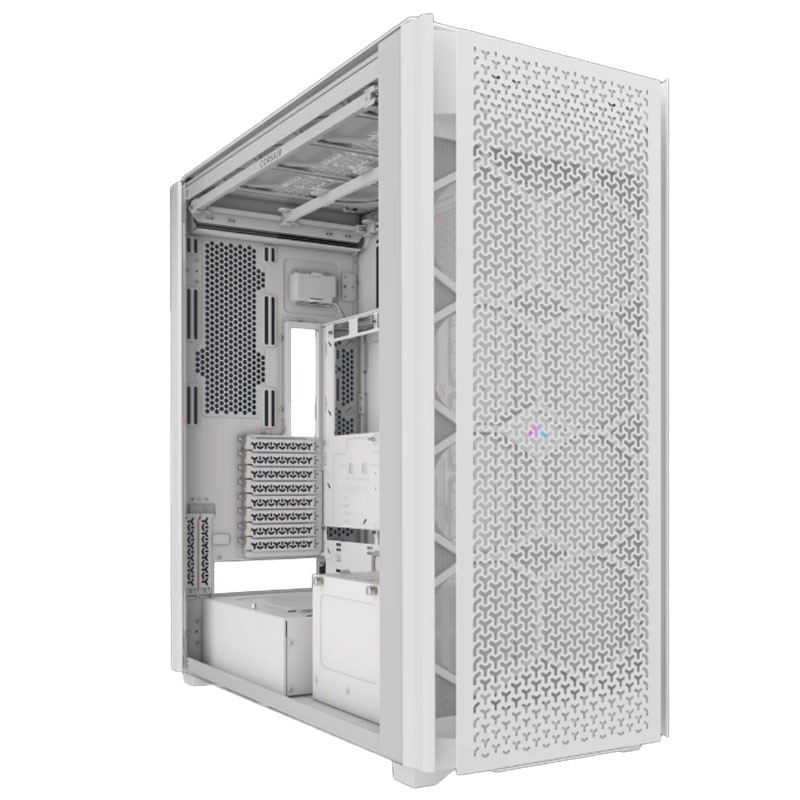 Corsair 9000D RGB AIRFLOW. Factor de forma: Full Tower, Tipo: PC, Color del producto: Blanco. Diámetro de ventiladores frontales soportados: 120,140,200 mm, Diámetro de ventiladores secundarios soportados: 120 mm, Diámetro de ventiladores traseros soportados: 120,140 mm. Ancho: 307 mm, Profundidad: 698 mm, Altura: 698 mm