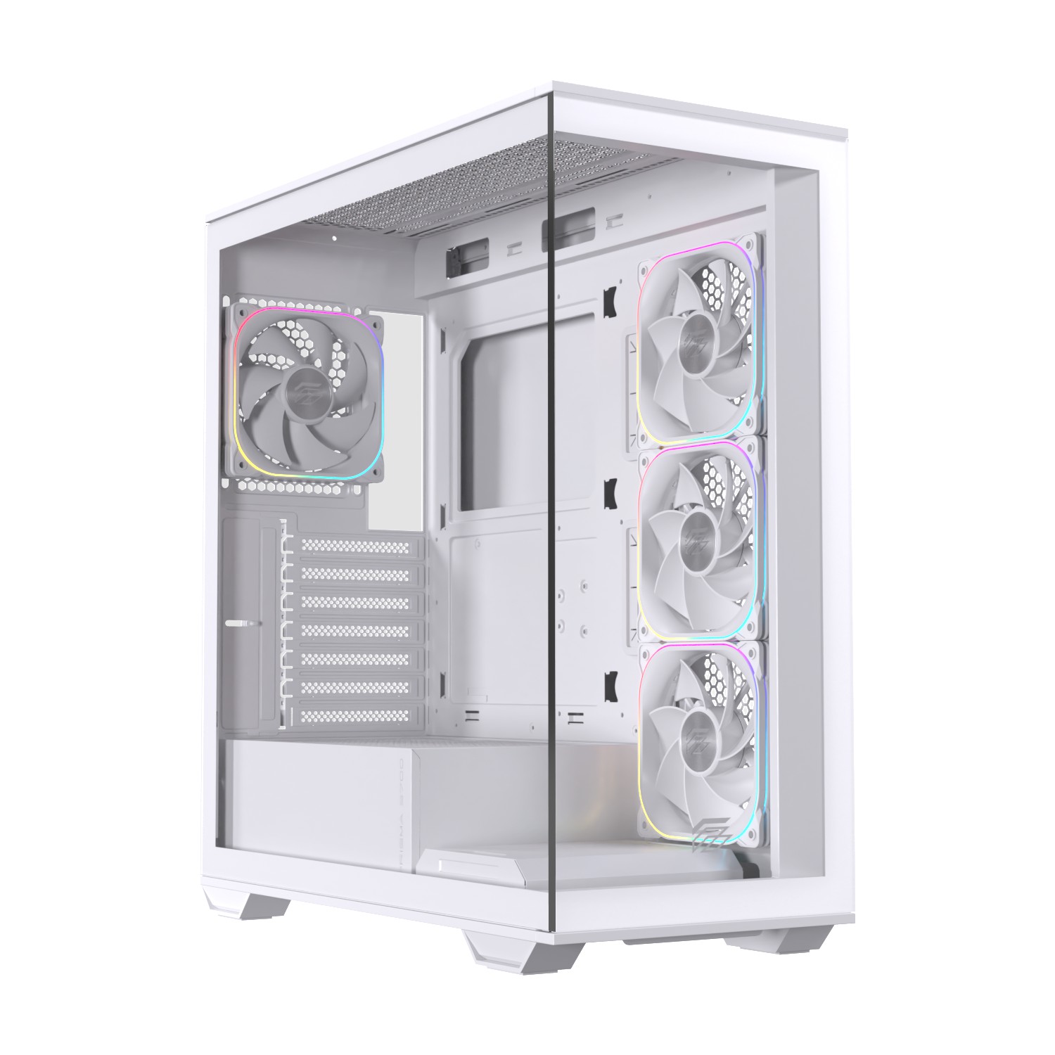 Einarex PRISMA S700 RGB White. Factor de forma: Midi Tower, Tipo: PC, Color del producto: Blanco. Ventiladores laterales instalados: 3x 120 mm, Diámetro de ventiladores secundarios soportados: 120 mm, Ventiladores traseros instalados: 1x 120 mm. Tamaños de disco duro soportados: 2.5,3.5, Factor de forma de disco SSD: 2.5. Ancho: 210 mm, Profundidad: 438 mm, Altura: 485 mm. País de origen: China