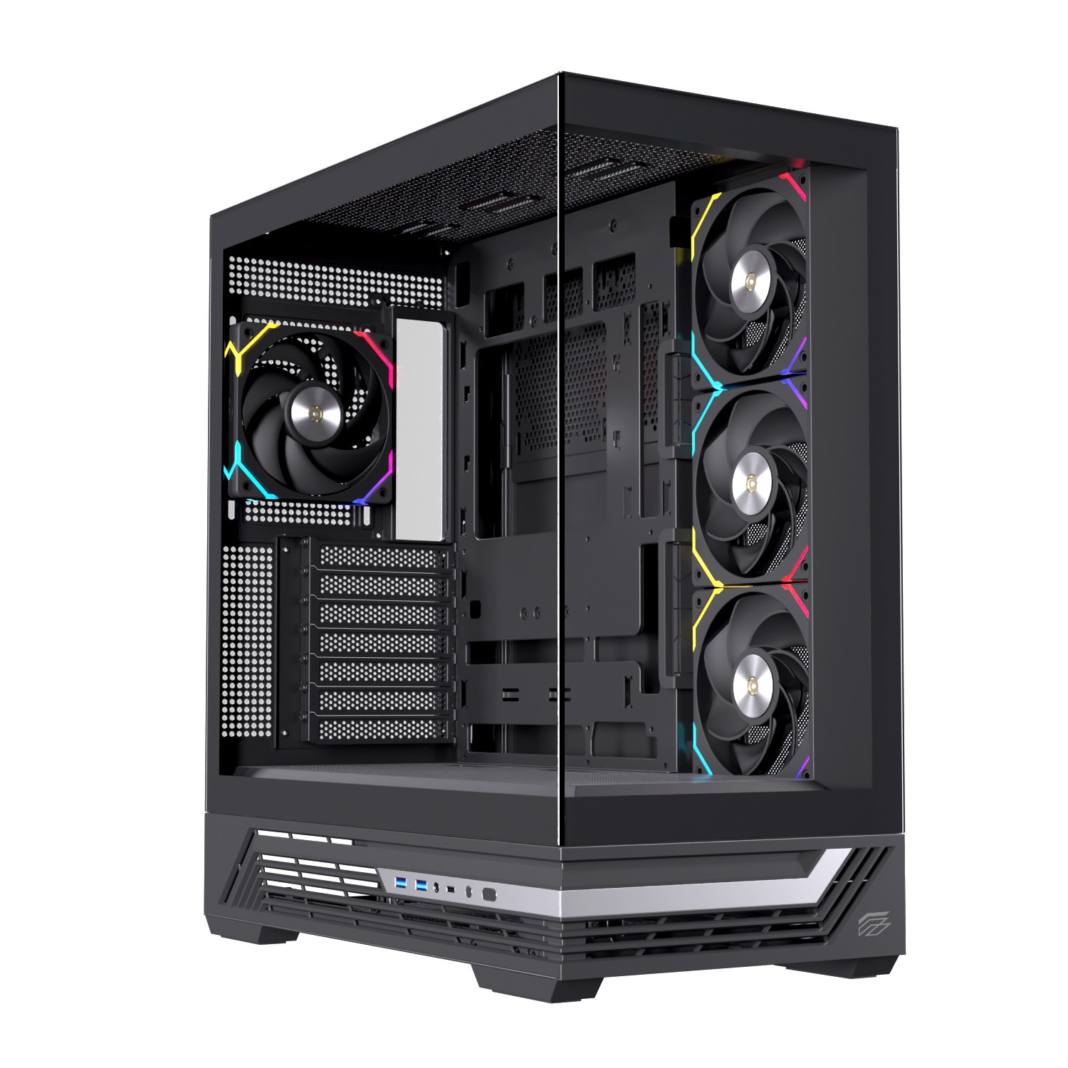 Einarex PRISMA S800 RGB Black. Factor de forma: Midi Tower, Tipo: PC, Color del producto: Negro. Ventiladores laterales instalados: 3x 120 mm, Diámetro de ventiladores secundarios soportados: 120 mm, Ventiladores traseros instalados: 1x 120 mm. Tamaños de disco duro soportados: 2.5,3.5, Factor de forma de disco SSD: 2.5. Ancho: 233 mm, Profundidad: 444 mm, Altura: 493 mm. País de origen: China