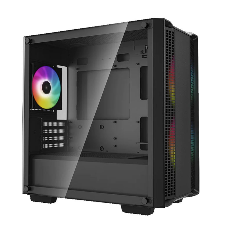 DeepCool CC360 ARGB. Tipo: PC, Color del producto: Negro, Formas de factor de tarjeta madre soportadas: micro ATX, Mini-ITX. Factores de forma de la fuente de alimentación compatibles: ATX, PS2. Ventiladores frontales instalados: 2x 120 mm, Diámetro de ventiladores frontales soportados: 120,140 mm, Ventiladores traseros instalados: 1x 120 mm. Ancho: 215 mm, Profundidad: 418 mm, Altura: 431 mm