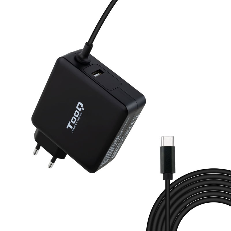 TooQ TQLC-USBC65PD. Utilizar con: Portátil, Tipo de fuente de alimentación: Interior, Voltaje de entrada: 100 V. Color del producto: Negro. Certificados de sostenibilidad: CE, RoHS. Longitud de cable: 1,8 m, Ancho: 71 mm, Profundidad: 108 mm. Cantidad por paquete: 1 pieza(s), Cables incluidos: USB Tipo C, Ancho del paquete: 210 mm