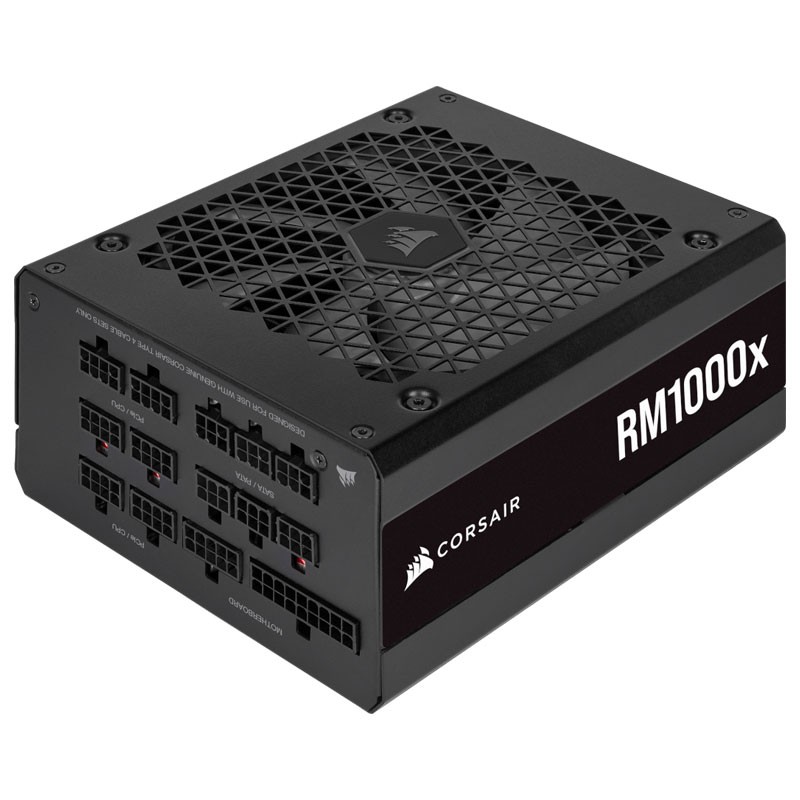 Corsair RM1000x. Potencia total: 1000 W, Voltaje de entrada AC: 100 – 240 V, Frecuencia de entrada AC: 47 – 63 Hz. Alimentador de energía para tarjeta madre: 24-pin ATX, Tipo de cableado: Totalmente modular. Utilizar con: PC, Factor de forma de fuente de alimentación (PSU): ATX, Certificación 80 PLUS: 80 PLUS Gold. Color del producto: Negro, Tipo de enfriamiento: Activo, Diámetro de ventilador: 14 cm. Ancho: 150 mm, Profundidad: 160 mm, Altura: 86 mm