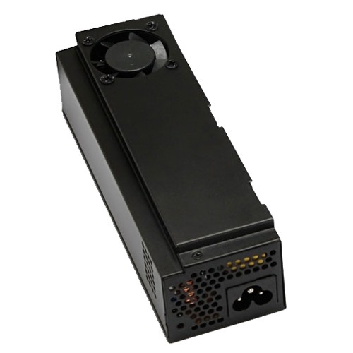 UNYKAch ITX 150. Potencia total: 150 W, Frecuencia de entrada AC: 50 – 60, Potencia combinada (3,3 V): 16,5 W. Diámetro de ventilador: 4 cm, Número de ventiladores: 1 Ventilador(es), Ubicación de ventilador: Superior. Alimentador de energía para tarjeta madre: 20+4 pin ATX, Longitud del cable de alimentación de la placa base: 28 cm. Utilizar con: PC, Factor de forma de fuente de alimentación (PSU): Flex ATX, Formas de factor de tarjeta madre soportadas: Mini-ITX. Ancho: 55 mm, Profundidad: 170 mm, Altura: 40 mm