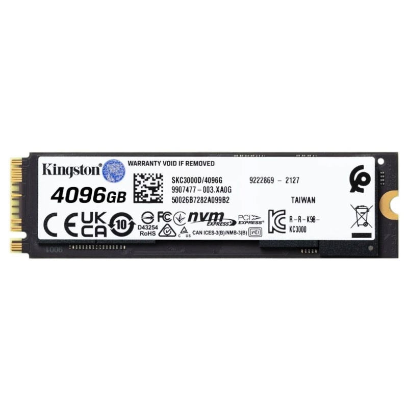 Kingston Technology KC3000. SDD, capacidad: 4,1 TB, Factor de forma de disco SSD: M.2, Velocidad de lectura: 7000 MB/s, Velocidad de escritura: 7000 MB/s, Componente para: PC/ordenador portátil