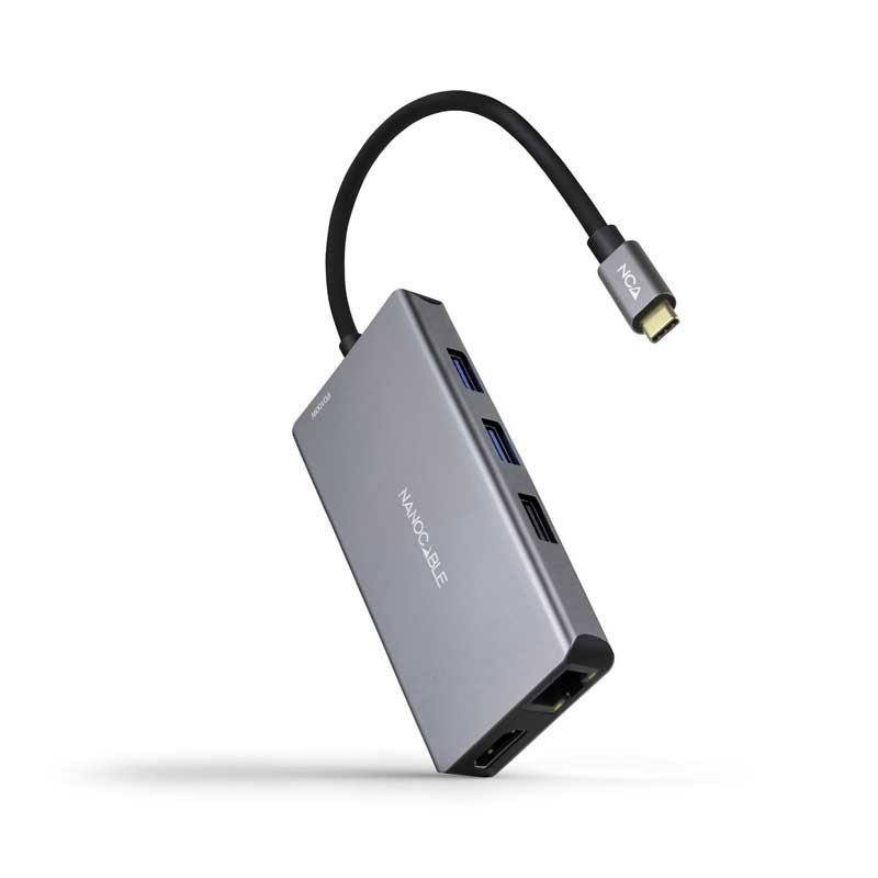 Nanocable HUB USB-C 9 en 1, Conversor USB-C a 3 x USB-A + 2 x HDMI + RJ45 + TF + SD + USB-C PD 100W, Aluminio, 15 cm, Gris. Tecnología de conectividad: Alámbrico, Interfaz de host: USB 3.2 Gen 1 (3.1 Gen 1) Type-C, Entrega de energía USB (USB Power Delivery) de hasta: 100 W. Ethernet LAN, velocidad de transferencia de datos: 10,100,1000 Mbit/s, Estándares de red: IEEE 802.3, IEEE 802.3ab, IEEE 802.3az, IEEE 802.3u, IEEE 802.3x. Color del producto: Gris, Tarjetas de memoria compatibles: MMC, MicroSD (TransFlash), MicroSDHC, MicroSDXC, RS-MMC, SD, SDHC, SDXC, Tipo HD: 4K Ultra HD. Alimentación: USB, Longitud del cable USB: 0,15 m. Certificados de sostenibilidad: CE, RoHS