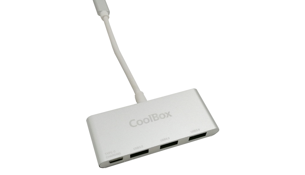 CoolBox COO-HUC3U3PD. Interfaz de host: USB 3.0 (3.1 Gen 1) Type-C, Interfaces de concentradores: USB 3.0 (3.1 Gen 1) Type-A,USB 3.0 (3.1 Gen 1) Type-C. Velocidad de transferencia de datos: 5000 Mbit/s. Alimentación: USB. Color del producto: Aluminio, Materiales: Aluminio. Ancho: 85 mm, Profundidad: 35 mm, Altura: 10 mm