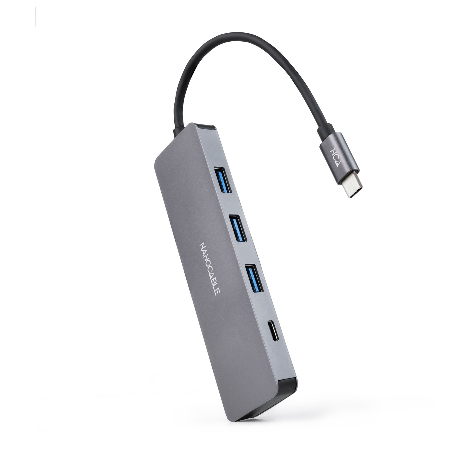 Nanocable Hub USB-C a 3xUSB3.0/H + 1xUSB-C/H Aluminio 10 cm, Gris. Interfaz de host: USB 3.2 Gen 1 (3.1 Gen 1) Type-C, Interfaces de concentradores: USB 3.2 Gen 1 (3.1 Gen 1) Type-A, USB 3.2 Gen 1 (3.1 Gen 1) Type-C. Velocidad de transferencia de datos: 5 Mbit/s, Color del producto: Gris, Material de la carcasa: Aluminio. Ancho: 36 mm, Profundidad: 125 mm, Altura: 10 mm. Cantidad por paquete: 1 pieza(s), Ancho del paquete: 230 mm, Profundidad del paquete: 10 mm. Certificados de sostenibilidad: CE, RoHS