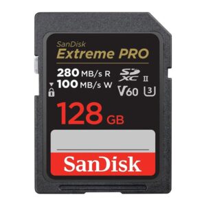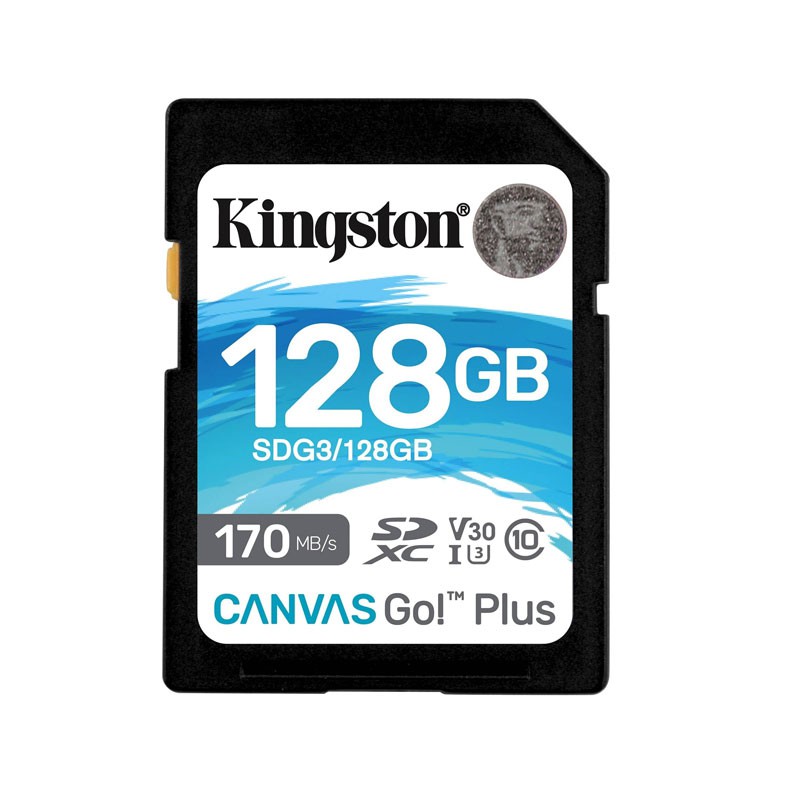 Kingston Technology Canvas Go! Plus. Capacidad: 128 GB, Tipo de tarjeta flash: SD, Clase de memoria flash: Clase 10, Tipo de memoria interna: UHS-I, Velocidad de lectura: 170 MB/s, Velocidad de escritura: 90 MB/s, Clase de velocidad UHS: Class 3 (U3), Clase de velocidad de vídeo: V30. Funciones de protección: Resistente a golpes, Resistente a la temperatura, Resistente a las vibraciones, Resistente al…, Color del producto: Negro