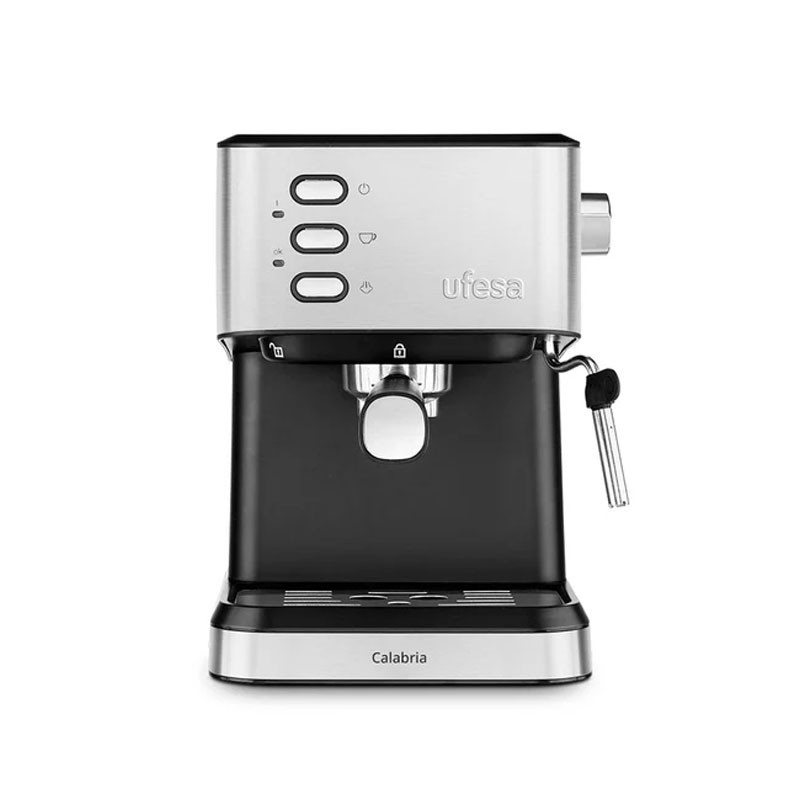 Ufesa Calàbria. Tipo de producto: Máquina espresso, Capacidad de reservorio de agua: 1,5 L, Café tipo de entrada: De café molido, Depósito para café preparado: Taza. Potencia: 1050 W. Color del producto: Negro, Acero inoxidable