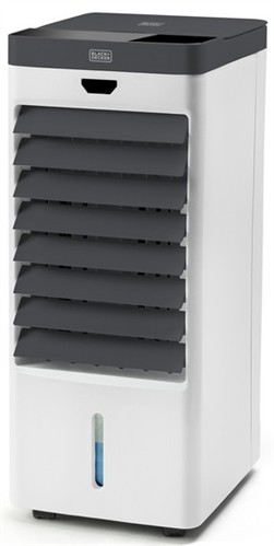 Black & Decker BXAC50E. Tipo: Climatizador evaporativo portátil, Color del producto: Negro, Blanco, Número de ruedas: 4 rueda(s). Capacidad de reservorio de agua: 5 L, flujo de aire: 400 m³/h, Duración del contador (mínimo): 0,5 h. Alimentación: Corriente alterna, Carga conectada: 75 W, Voltaje de entrada AC: 220/240 V. Altura: 440 mm, Peso: 4 kg