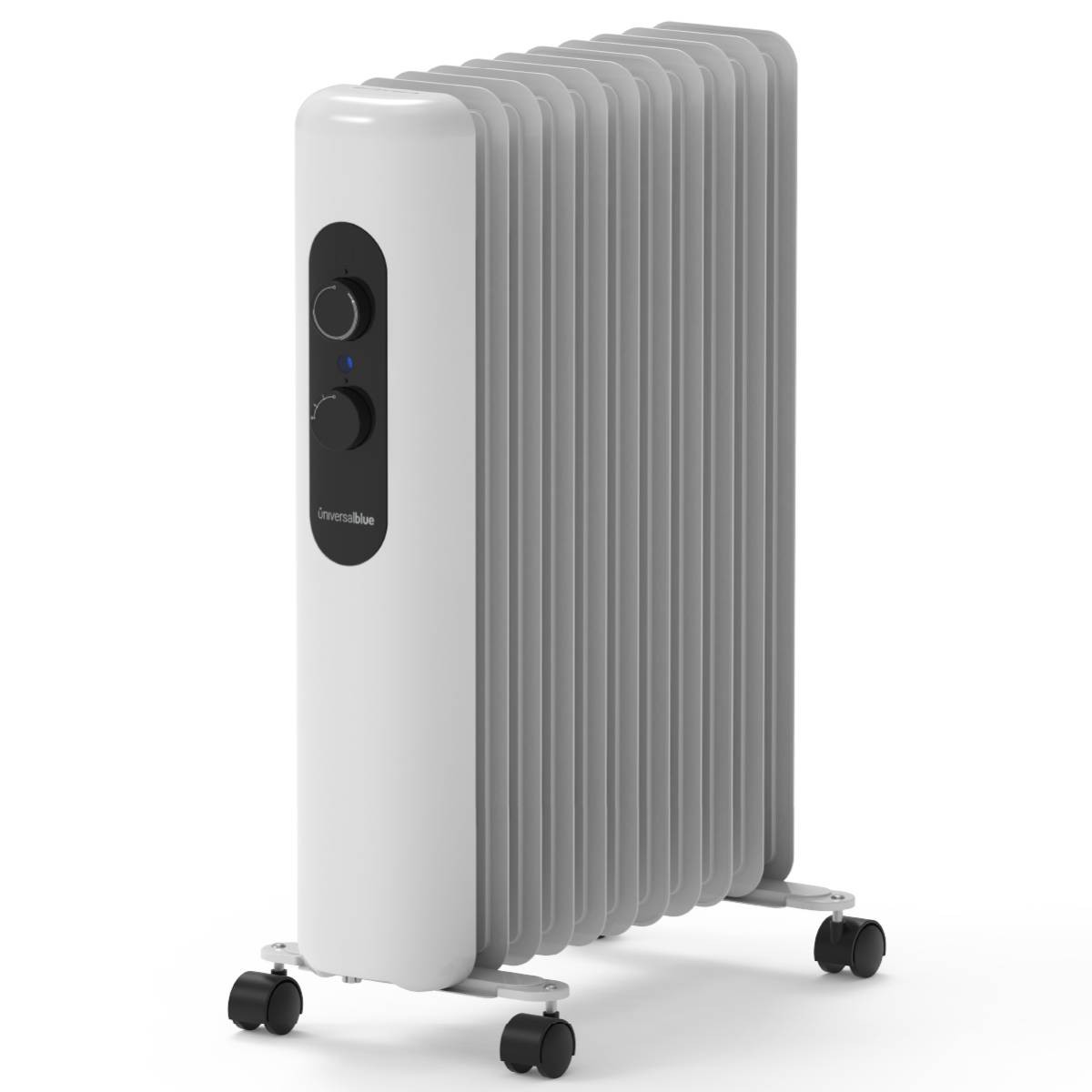 Universal Blue UCRA9103-24. Tipo: Radiador de aceite eléctrico, Calefacción tipo de elemento: Aceite, Longitud del cable: 1,3 m. Adecuado para: Interior, Opciones de colocación: Piso, Color del producto: Blanco. Potencia de calentamiento: 2500 W, Adecuado para habitaciones hasta: 25 m², Tipo de control del termostato: Mecánico. Voltaje de entrada AC: 220 – 240 V, Frecuencia de entrada AC: 50 – 60 Hz. Ancho: 460 mm, Profundidad: 240 mm, Altura: 630 mm