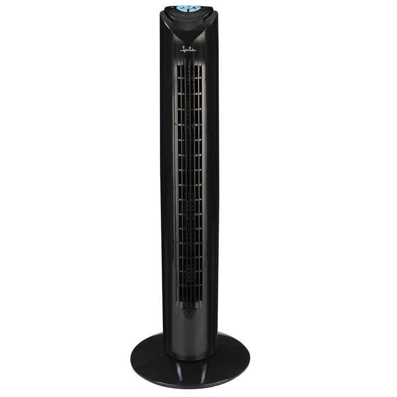 JATA JVVT3042. Tipo: Ventilador tipo torre para el hogar, Color del producto: Negro, Ubicación: Piso. Alimentación: Corriente alterna, Consumo energético: 45 W, Voltaje de entrada AC: 230 V. Ancho: 270 mm, Profundidad: 270 mm, Altura: 820 mm. Tipo de embalaje: Caja
