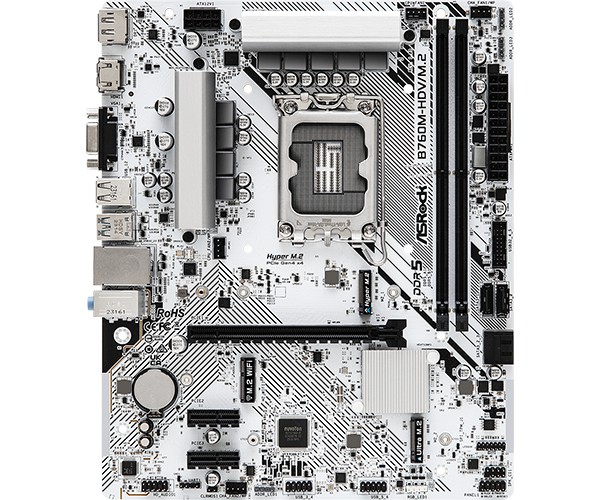 Asrock B760M-HDV/M.2. Fabricante de procesador: Intel, Socket de procesador: LGA 1700, Procesador compatible: Intel Core i3 12th Gen, Intel Core i3 13th Gen, Intel Core i5 12th Gen, Intel Core i5 13th Gen,…. tipos de memoria compatibles: DDR5-SDRAM, Memoria interna máxima: 96 GB, Tipo de ranuras de memoria: DIMM. Interfaces de disco de almacenamiento soportados: M.2, SATA III, Niveles RAID: 0, 1, 5, 10. Tipo de interfaz ethernet: 2.5 Gigabit Ethernet, Controlador LAN: Dragon RTL8125BG. Componente para: PC, Factor de forma: micro ATX, Familia del chipset: Intel