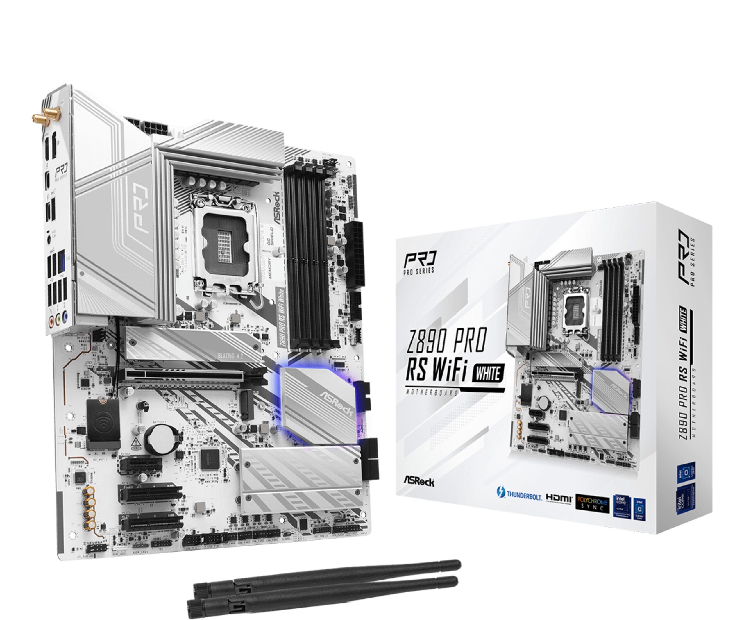 Asrock Z890 Pro RS WiFi White. Fabricante de procesador: Intel, Socket de procesador: LGA 1851 (Socket V1), Procesador compatible: Intel Core Ultra (Series 2). tipos de memoria compatibles: DDR5-SDRAM, Memoria interna máxima: 256 GB, Tipo de ranuras de memoria: DIMM. Interfaces de disco de almacenamiento soportados: M.2, SATA III, Tipos de unidades de almacenamiento admitidas: HDD & SSD, Niveles RAID: 0, 1, 5, 10. Tipo de interfaz ethernet: 2.5 Gigabit Ethernet, Controlador LAN: Dragon RTL8125BG, Estándar Wi-Fi: Wi-Fi 6E (802.11ax). Componente para: PC, Factor de forma: ATX, Familia del chipset: Intel