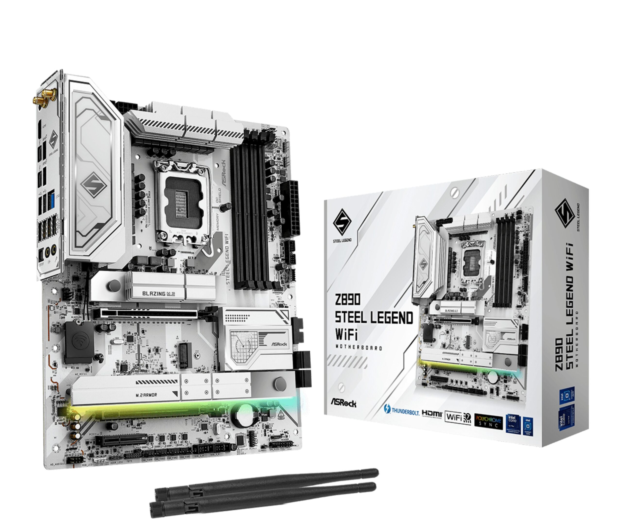 Asrock Z890 Steel Legend WiFi. Fabricante de procesador: Intel, Socket de procesador: LGA 1851 (Socket V1), Procesador compatible: Intel Core Ultra (Series 2). tipos de memoria compatibles: DDR5-SDRAM, Memoria interna máxima: 256 GB, Tipo de ranuras de memoria: DIMM. Interfaces de disco de almacenamiento soportados: M.2, SATA III, Niveles RAID: 0, 1, 5, 10. Tipo de interfaz ethernet: 2.5 Gigabit Ethernet, Controlador LAN: Dragon RTL8125BG, Estándar Wi-Fi: Wi-Fi 7 (802.11be). Componente para: PC, Factor de forma: ATX, Familia del chipset: Intel