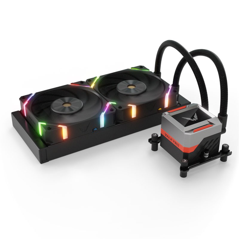 Valkyrie VK-AIOSY240B. Tipo: Sistema de refrigeración líquida todo en uno, Máximo flujo de aire: 80 cfm, Tipo de soporte: Rodamiento dinámico fluido (FDB). Color del producto: Negro