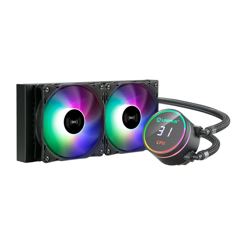 UNYKAch AquaStorm 240. Tipo: Kit de refrigeración líquida, Diámetro de ventilador: 12 cm. Ancho: 120 mm, Profundidad: 275 mm, Altura: 52 mm. Color del producto: Negro