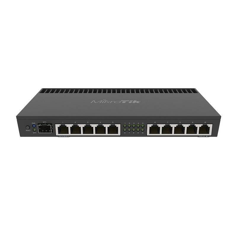 Mikrotik RB4011IGS+RM. Estándares de red: IEEE 802.3at, Tipo de interfaz ethernet: Gigabit Ethernet, Tecnología de cableado: 10/100/1000Base-T(X). Algoritmos de seguridad soportados: 128-bit AES,256-bit AES,SHA-1,SHA-256. Modelo del procesador: Annapurna Labs Alpine AL21400, Frecuencia del procesador: 1400 MHz, Unidad de almacenamiento: Flash. Color del producto: Negro, Capacidad del rack: 1U. Consumo energético: 33 W, Alimentación: CC, PoE, Voltaje de salida: 57 V