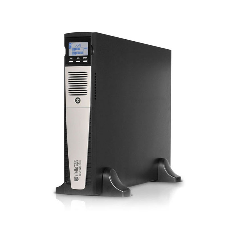 Riello Sentinel Dual. Capacidad de potencia de salida (VA): 1 kVA, Potencia de salida: 900 W, Voltaje de entrada de operación (min): 140 V. Tipo de salida AC: C13 acoplador, Conector: C14 acoplador, Cantidad de salidas AC: 8 salidas AC. Tecnología de batería: Sealed Lead Acid (VRLA), Tiempo de recarga de la batería: 4 h. Color del producto: Negro, Tipo de enfriamiento: Activo, Tipo de visualizador: LCD. Ancho: 87 mm, Profundidad: 425 mm, Altura: 450 mm