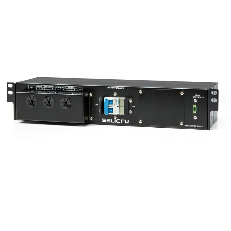 Salicru BM-R 63A. Tipo de producto: Interruptor de derivación, Tipo de montaje: Montaje en bastidor, Color del producto: Negro. Voltaje de entrada: 208 / 220 / 230 / 240 V, Corriente de entrada: 63 A, Frecuencia de entrada: 50 / 60 Hz. Ancho: 438 mm, Profundidad: 123 mm, Altura: 86 mm