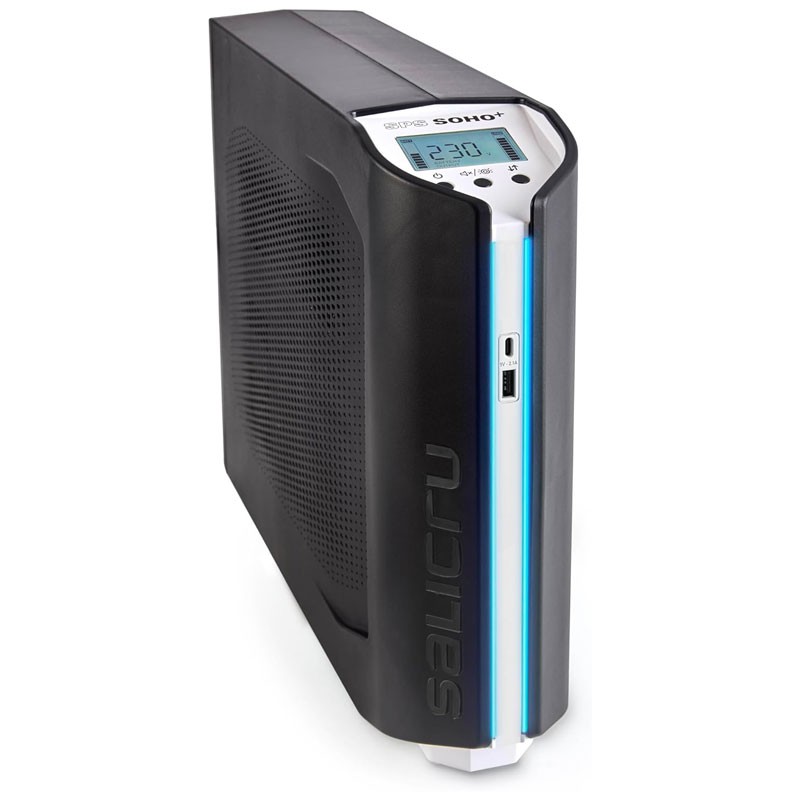 Salicru SPS 1650 SOHO+. Topología UPS: Línea interactiva, Capacidad de potencia de salida (VA): 1,65 kVA, Potencia de salida: 900 W. Tipo de salida AC: Tipo E / F, Cantidad de salidas AC: 4 salidas AC, Tipo de puerto USB: USB Type A/USB Type-C. Tecnología de batería: Plomo-Calcio (Pb-Ca), Tiempo de recarga (90%): 8 h. Factor de forma: Torre, Color del producto: Negro, Tipo de control: Botones. Advertencia de seguridad: IEC 62040-1, IEC 62040-2, EN-62040-3, ISO 9001, ISO 14001, ISO 45001