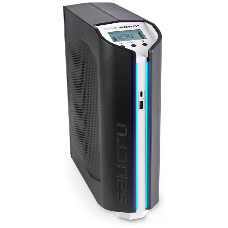 Salicru SPS 900 SOHO+ IEC. Topología UPS: Línea interactiva, Capacidad de potencia de salida (VA): 0,9 kVA, Potencia de salida: 510 W. Tipo de salida AC: IEC 60320, Cantidad de salidas AC: 6 salidas AC, Tipo de puerto USB: USB Type A/USB Type-C. Tecnología de batería: Plomo-Calcio (Pb-Ca), Tiempo de recarga (90%): 8 h. Factor de forma: Torre, Color del producto: Negro, Tipo de control: Botones. Advertencia de seguridad: IEC 62040-1, IEC 62040-2, EN-62040-3, ISO 9001, ISO 14001, ISO 45001