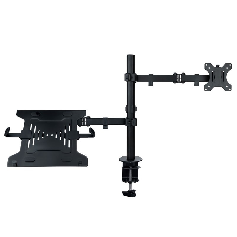TooQ Soporte de mesa para pantalla 13-32 y portátil. Montaje: Abrazadera/Atornillado, Capacidad máxima de peso: 12,5 kg, Tamaño mínimo de pantalla: 33 cm (13), Tamaño máximo de pantalla: 81,3 cm (32), Compatibilidad con interfaz de montaje (min): 75 x 75 mm, Compatibilidad con interfaz de montaje (max): 100 x 100 mm. Ajustes de altura, Ángulo de giro (alcance): -90 – 90°, Ángulo de inclinación: -45 – 45°. Color del producto: Negro