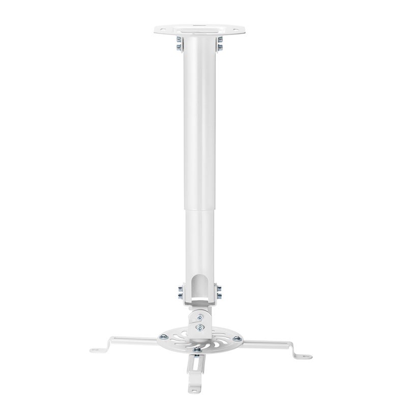AISENS Soporte Universal Giratorio, Inclinable y Extensible de Techo para Proyector 13.5Kg, Blanco. Tipo de montaje: Techo, Capacidad máxima de peso: 13,5 kg, Color del producto: Blanco. Ancho: 130 mm, Altura: 580 mm, Profundidad: 110 mm. Cantidad por paquete: 1 pieza(s), Cantidad por caja: 10 pieza(s), Ancho de la caja principal: 315 mm