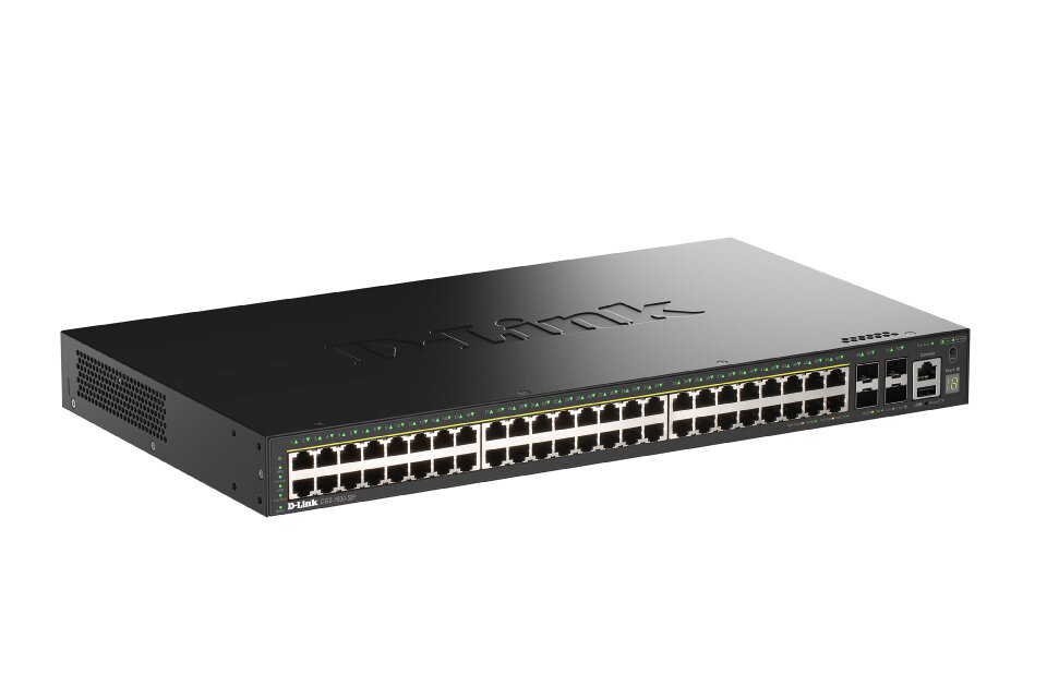 D-Link DGS-1530-52P/E. Tipo de interruptor: Gestionado, Capa del interruptor: L2. Puertos tipo básico de conmutación RJ-45 Ethernet: Gigabit Ethernet (10/100/1000), Cantidad de puertos básicos de conmutación RJ-45 Ethernet: 48, Cantidad de puertos USB 2.0: 1, Puerto de consola: RJ-45. Bidireccional completo (Full duplex). Tabla de direcciones MAC: 16000 entradas, Capacidad de conmutación: 176 Gbit/s. Estándares de red: IEEE 802.3, IEEE 802.3ab, IEEE 802.3ae, IEEE 802.3u, IEEE 802.3x. Energía sobre Ethernet (PoE). Montaje en rack