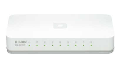 D-Link GO-SW-8E. Tipo de interruptor: No administrado. Puertos tipo básico de conmutación RJ-45 Ethernet: Fast Ethernet (10/100), Cantidad de puertos básicos de conmutación RJ-45 Ethernet: 8. Bidireccional completo (Full duplex). Tabla de direcciones MAC: 2000 entradas, Capacidad de conmutación: 1 Gbit/s. Estándares de red: IEEE 802.3,IEEE 802.3az,IEEE 802.3x. Conector eléctrico: Toma de entrada de CC