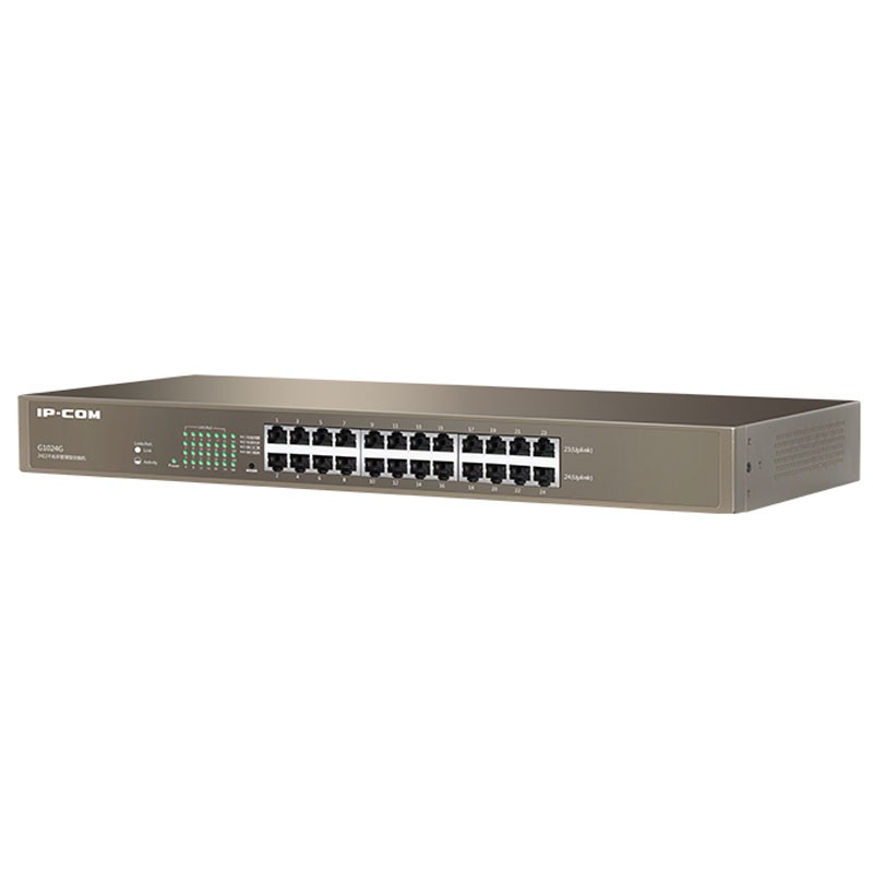 IP-COM Networks G1024G. Tipo de interruptor: No administrado, Capa del interruptor: L2. Puertos tipo básico de conmutación RJ-45 Ethernet: Gigabit Ethernet (10/100/1000), Cantidad de puertos básicos de conmutación RJ-45 Ethernet: 24. Bidireccional completo (Full duplex). Tabla de direcciones MAC: 8000 entradas, Capacidad de conmutación: 48 Gbit/s. Estándares de red: IEEE 802.3, IEEE 802.3ab, IEEE 802.3u, IEEE 802.3x. Montaje en rack