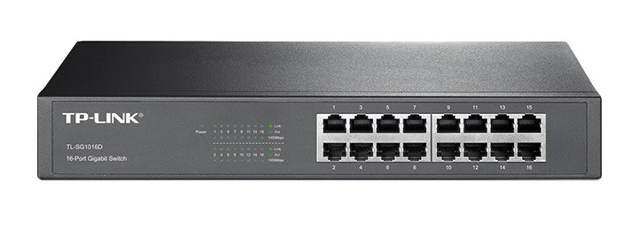 TP-LINK 16-Port Gigabit Desktop/Rackmount Switch. Tipo de interruptor: No administrado. Cantidad de puertos básicos de conmutación RJ-45 Ethernet: 16. Bidireccional completo (Full duplex). Tabla de direcciones MAC: 8000 entradas. Estándares de red: IEEE 802.3ab,IEEE 802.3u,IEEE 802.3x. Conector eléctrico: Toma de entrada de CC