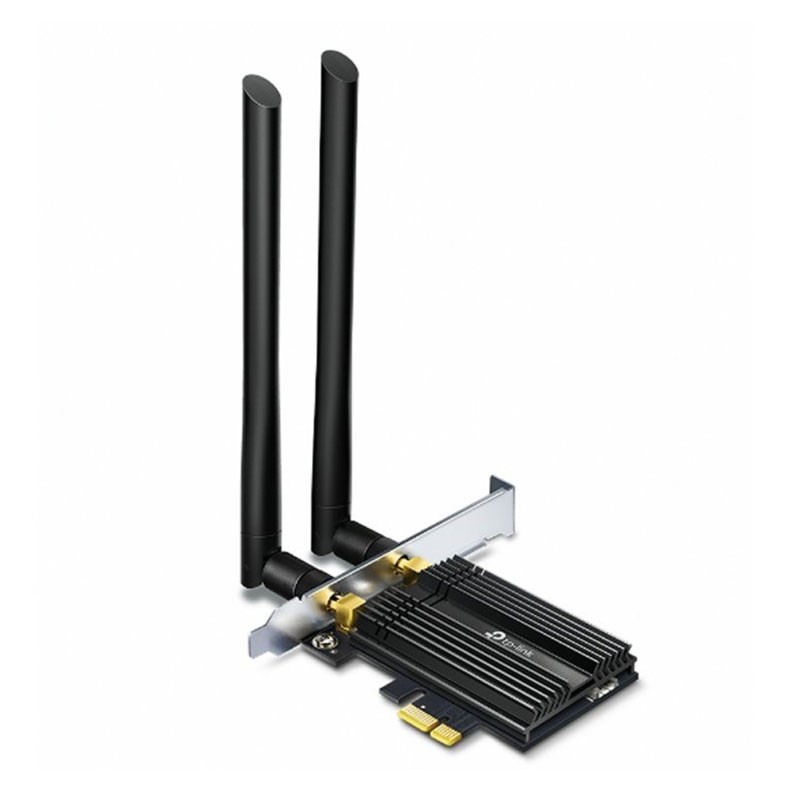 TP-Link Archer TX50E. Interno. Tecnología de conectividad: Inalámbrico, Interfaz de host: PCI Express, Interfaz: WLAN / Bluetooth. Rango máximo de transferencia de datos: 2402 Mbit/s, Estándar Wi-Fi: Wi-Fi 6 (802.11ax), Banda Wi-Fi: Doble banda (2,4 GHz / 5 GHz). Color del producto: Negro, Metálico