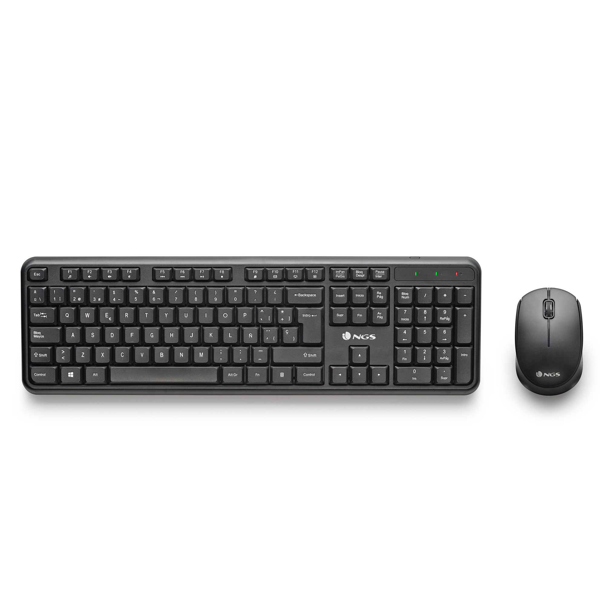 NGS HARMONY KIT (QUERTY, ES). Formato del teclado: Completo (100%). Estilo de teclado: Derecho. Tecnología de conectividad: Inalámbrico, Interfaz del dispositivo: RF inalámbrico, Diseño de teclado: QWERTY, Uso recomendado: Universal. Color del producto: Negro. Ratón incluido