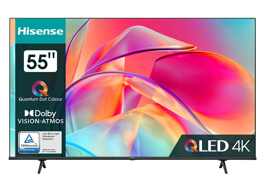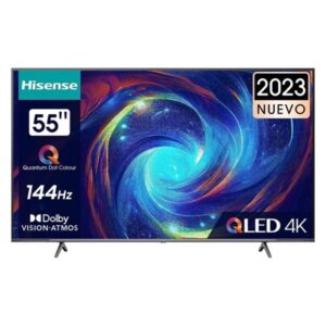 Hisense 55E77KQ. Diagonal de la pantalla: 139,7 cm (55), Resolución de la pantalla: 3840 x 2160 Pixeles, Tipo HD: 4K Ultra HD, Tecnología de visualización: QLED, Forma de la pantalla: Plana, Tipo de retroiluminación LED: Direct-LED. Smart TV. Brillo de pantalla: 250 cd / m². Formato de señal digital: DVB-C, DVB-S, DVB-S2, DVB-T, DVB-T2. Ethernet. Color del producto: Negro